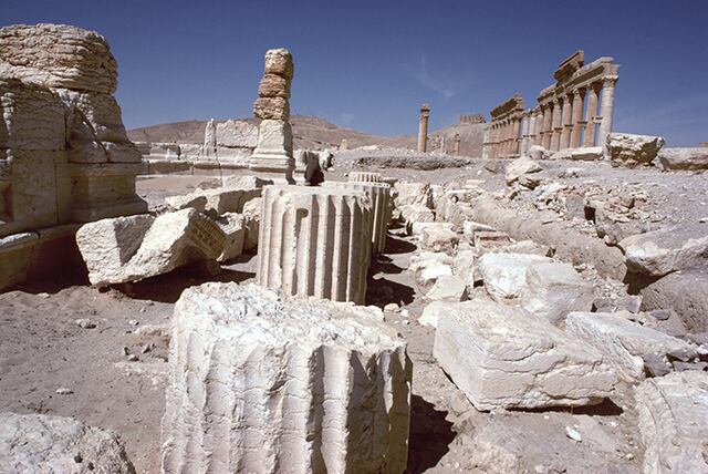 砂地の転が円柱を間近に見ると、パルミラの規模の壮大さが偲ばれる。